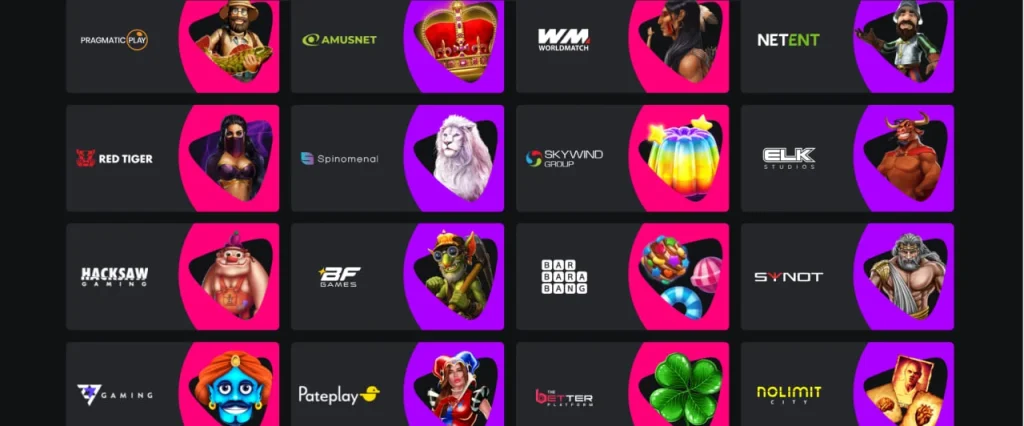 Колекция от игри включва хиляди слотове, игри с карти, рулетка, лотарии и казина на живо. Цялото съдържание е представено от водещи доставчици, които осигуряват висококачествени графики, стабилна работа и честни резултати.