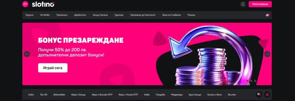 За потребителите, които правят редовни депозити, са налични презареждащи се бонуси за презареждане. Online casino slotino предлага три варианта на бонуси, които могат да бъдат активирани при депозиране.